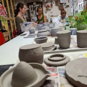 Budeme se věnovat základům zpracování hlíny, naučíme se přetáčet dno, vyrábět ouška, dekorovat nádobu za syrova – proškrabáváním, razítky nebo barevnými engobami nebo barevným sklem.